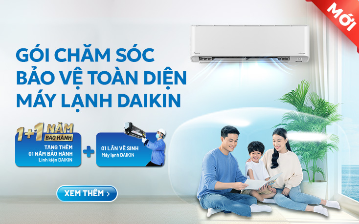 Lần đầu tiên, Daikin ra mắt “Gói chăm sóc bảo vệ toàn diện máy điều hòa” - giải pháp hoàn hảo giúp bạn an tâm tuyệt đối về chất lượng và tuổi thọ của điều hòa nhà bạn. Với dịch vụ bảo hành chuyên nghiệp, Daikin Vietnam cam kết đồng hành cùng bạn trong suốt quá trình sử dụng.